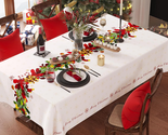 ?Exquisite Christmas Patterns?This christmas tablecloth features a sophisticated design with a neutral beige background and a beautifully detailed wreath running along the center. It creates a stylish and festive focal point for your table, offering a more refined and modern holiday aesthetic.