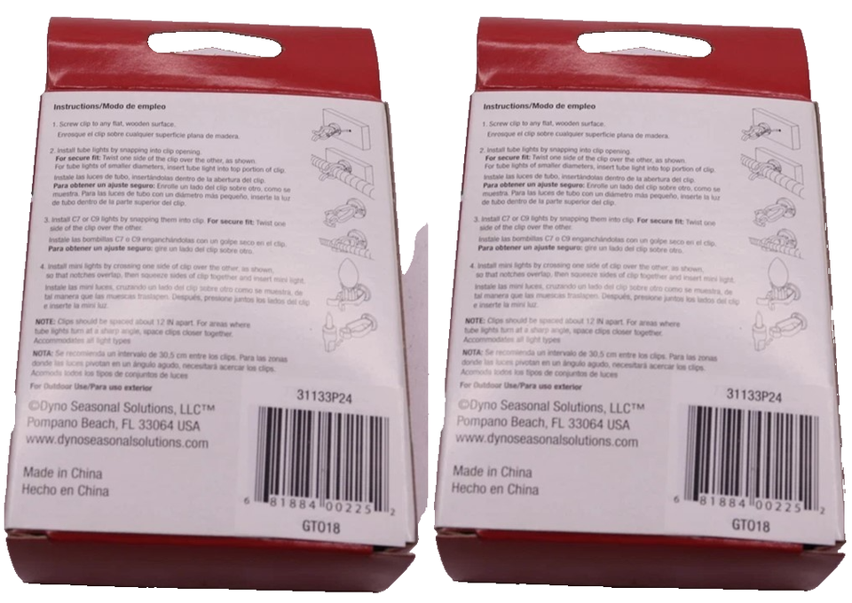 The Dyno clear plastic rope light clips provide a secure, low-profile solution for mounting rope lighting on a variety of surfaces including gutters, shingles, railings, and walls. This 25-pack features durable, weather-resistant clips that grip standard 1/2-inch rope lights firmly without crushing or damaging the cord. Their transparent design remains discreet in both daytime and nighttime displays, while the simple push-in installation requires no tools or adhesives?making them ideal for quick, damage-free holiday or landscape lighting setups.