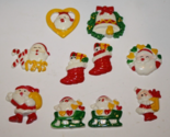 Christmas, Santa Claus, Candy Cane, Bell, Heart, Stocking, Sleigh, Charms (10) Plastic Craft Pieces Decorations
