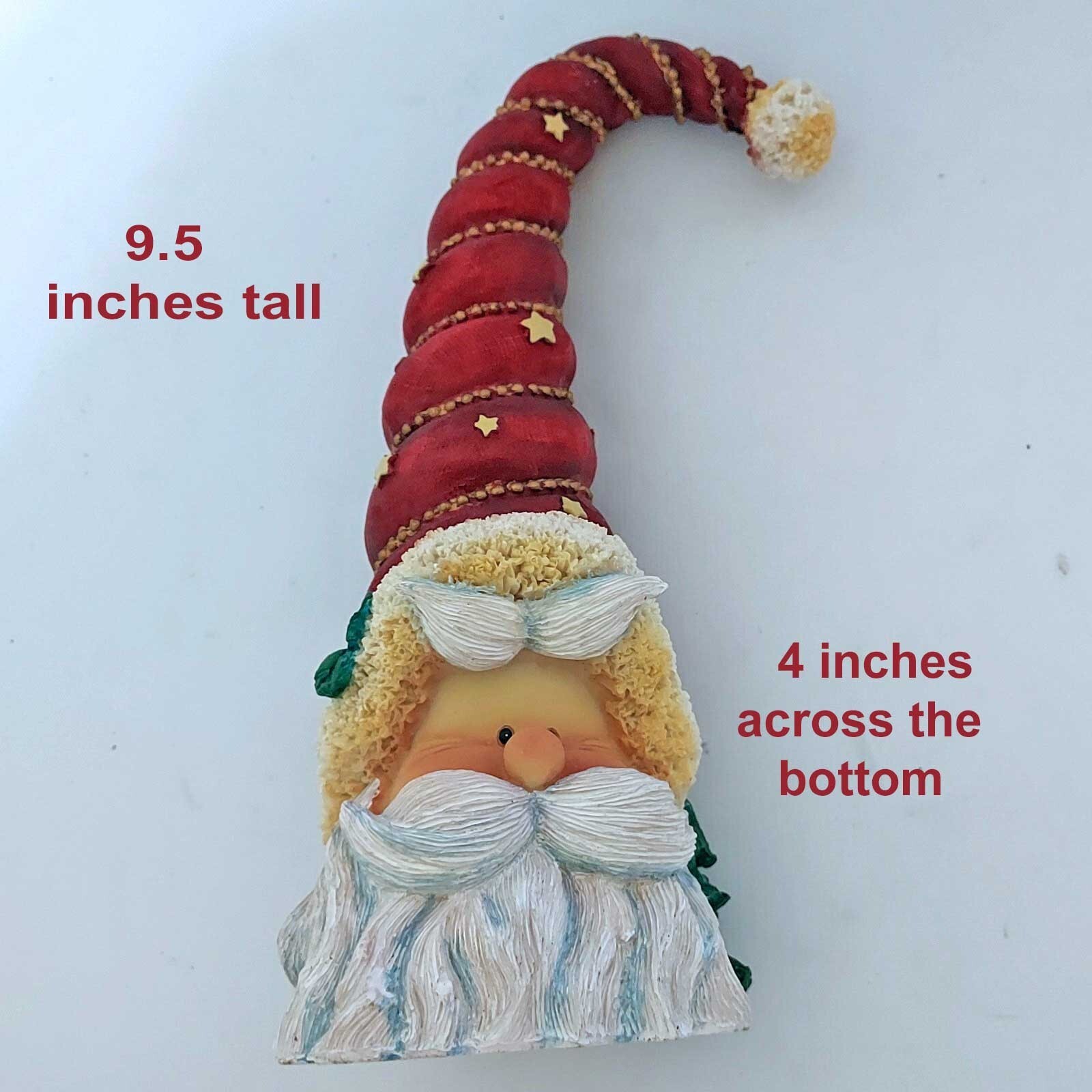 This Textured Santa Head with Burgundy Hat and Stars is 9 1/2 inches tall, 4