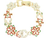 Elegant and festive, this enamel charm bracelet showcases open cutout snowflake and poinsettia designs. With a magnetic clasp for convenience, it’s both stylish and secure. The colorful enamel details add holiday flair, while the lightweight construction ensures comfortable wear. A seasonal accessory that pairs beautifully with holiday outfits.