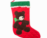 - Christmas Stocking Charming Teddy Bear w Heart Red w Green Inside f 16" Quilted