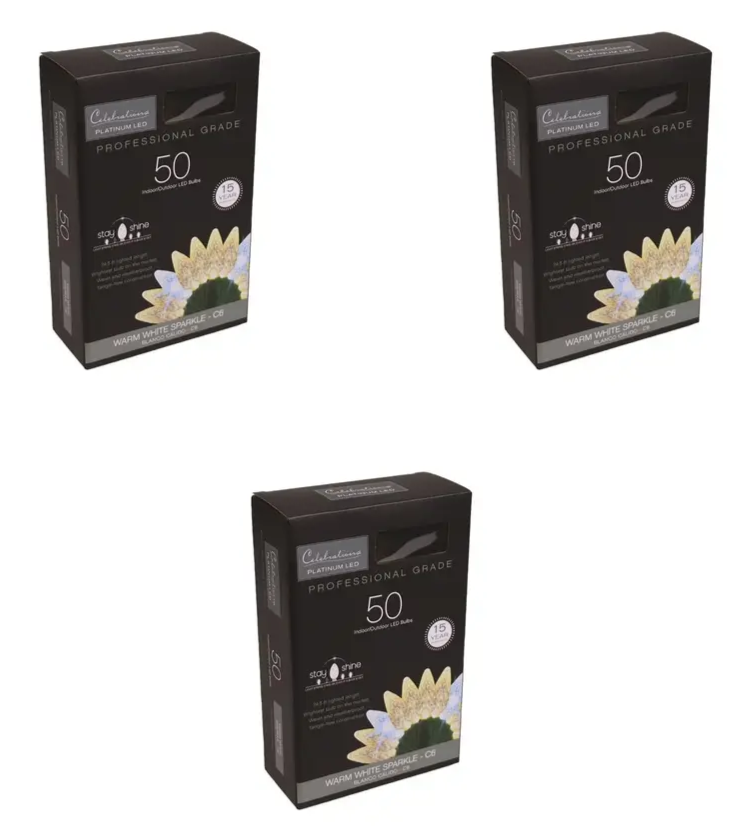 - Christmas String Lights LED C6 25' ft 50-ct Warm White, Celebrations (3-PACK)
