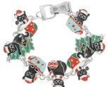 This enamel charm bracelet features a playful mix of holiday designs, including a black cat, stocking, and Christmas tree. With a secure magnetic clasp, it’s easy to wear while keeping a festive look. Lightweight and colorful, this bracelet makes a whimsical accessory for holiday celebrations or a fun gift for cat lovers.