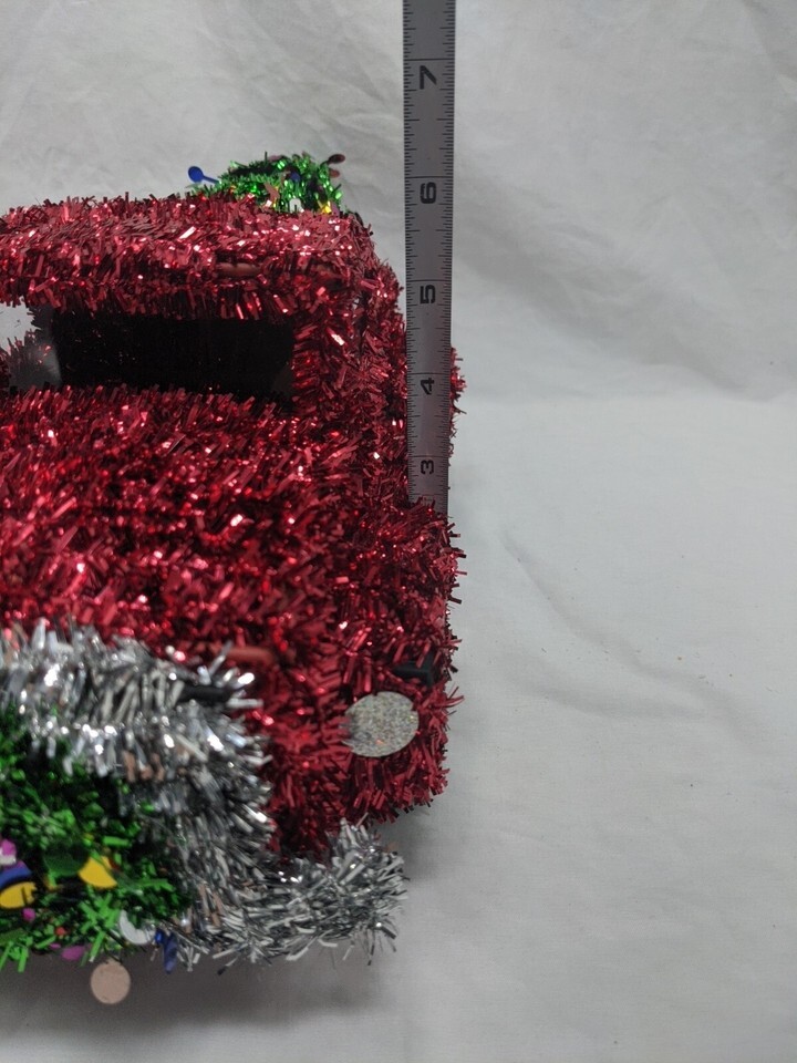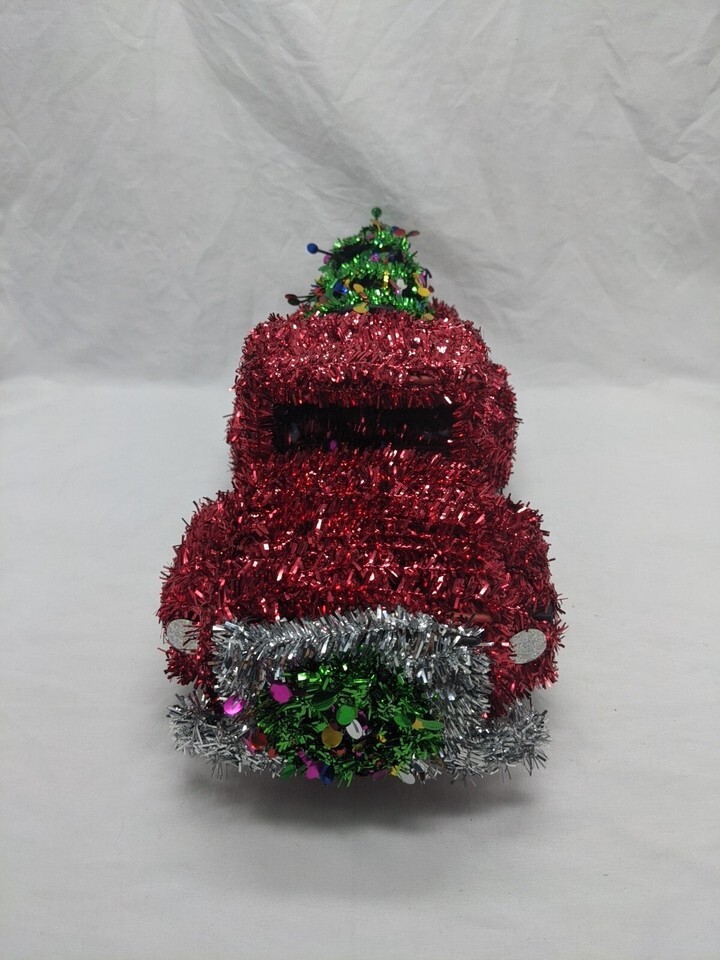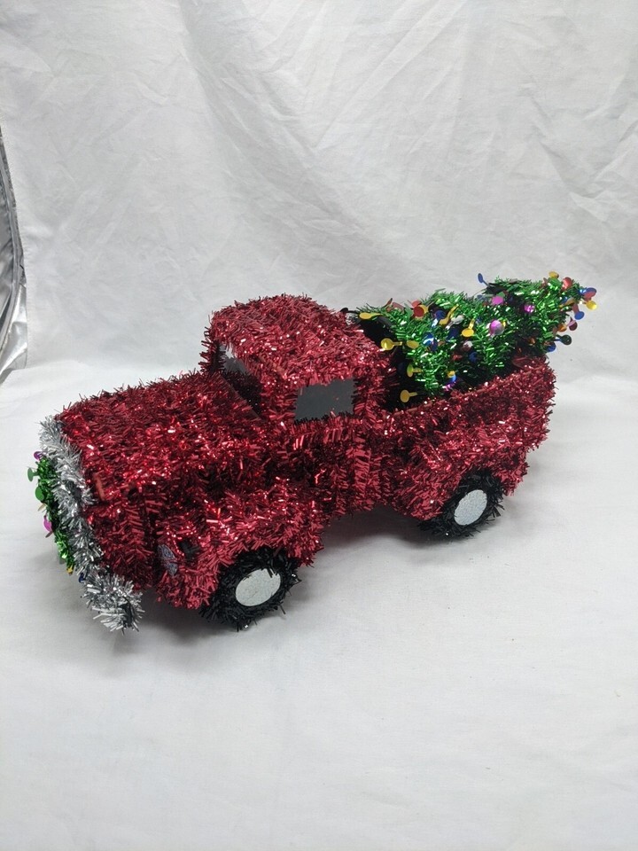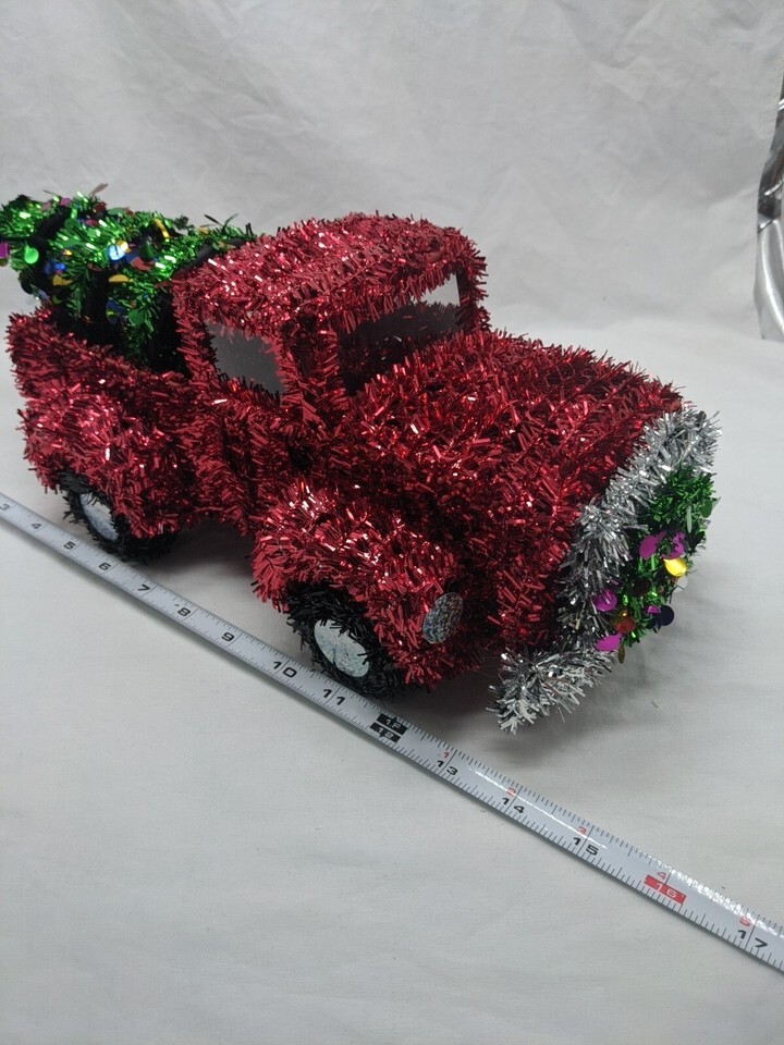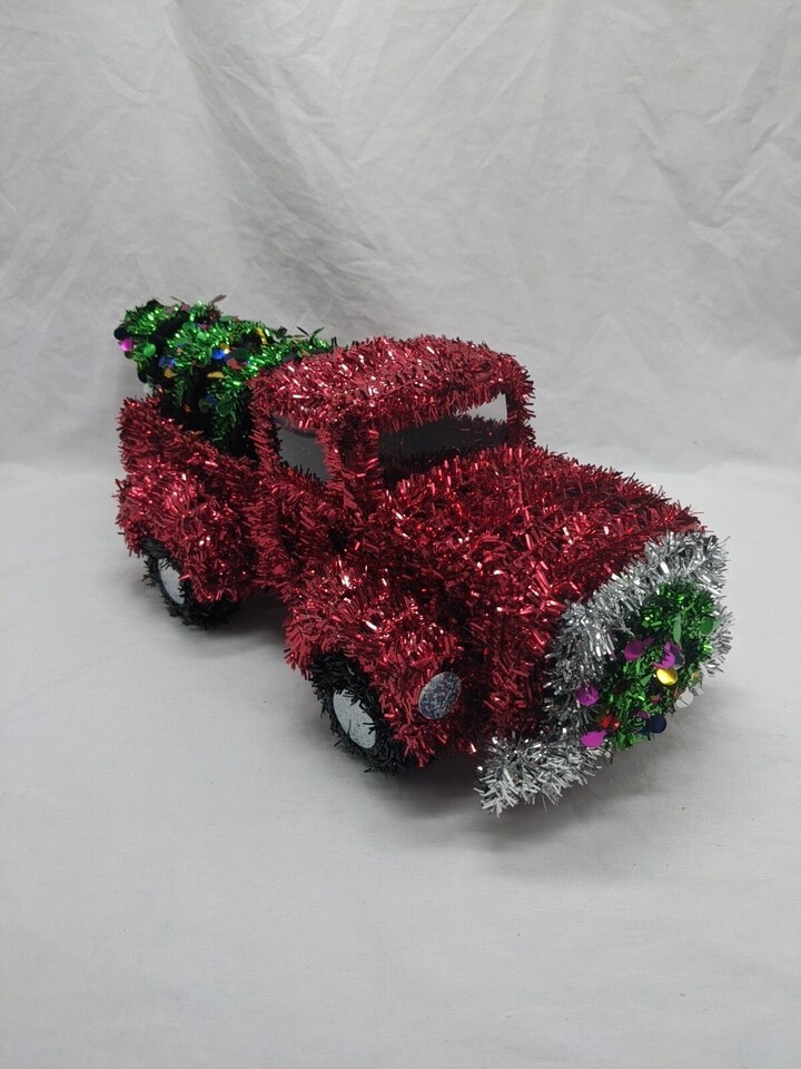- Christmas Tinsel Red Pick Up Truck Christmas Tree Wreath Decor 15"