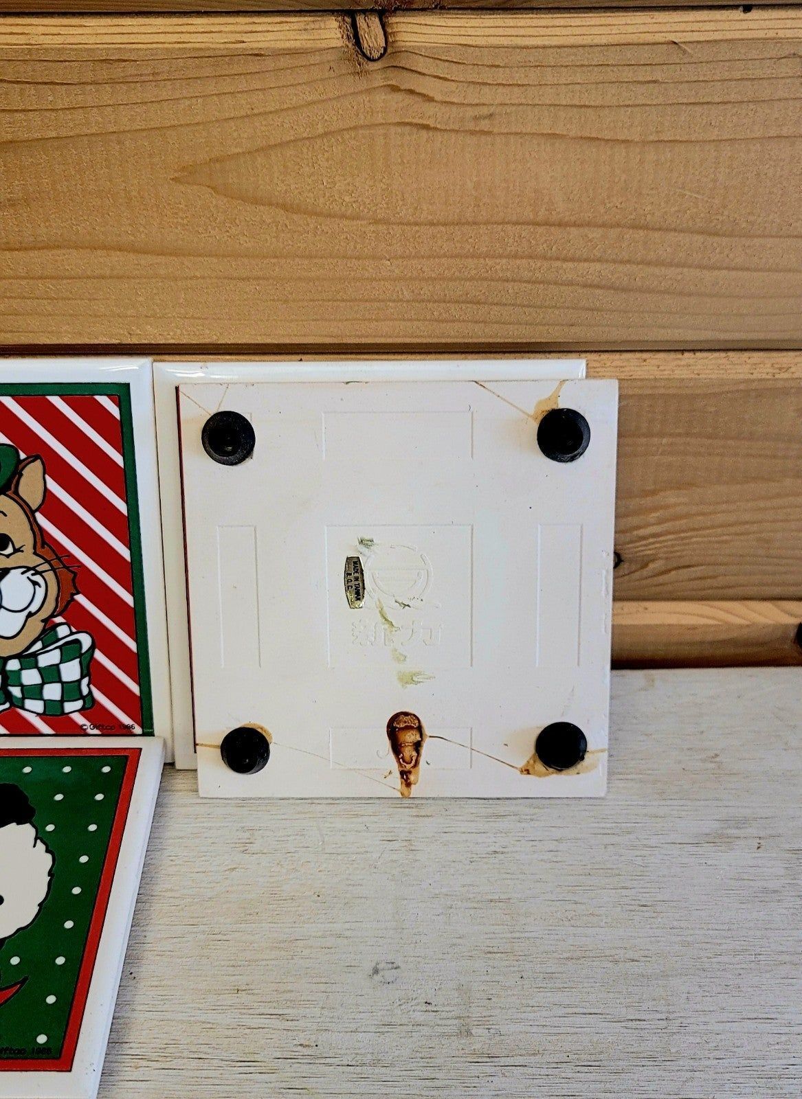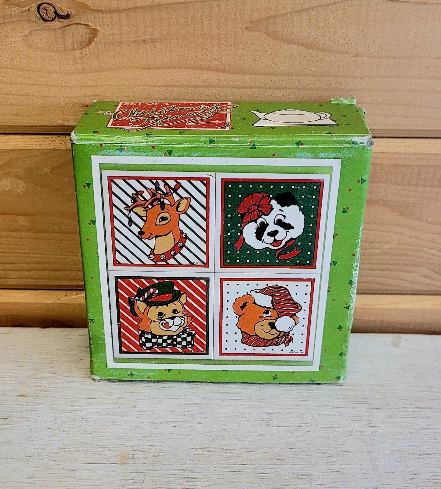 Christmas Vintage Trivets Coasters Set of 4 In Box 1986 Holiday Decoration
