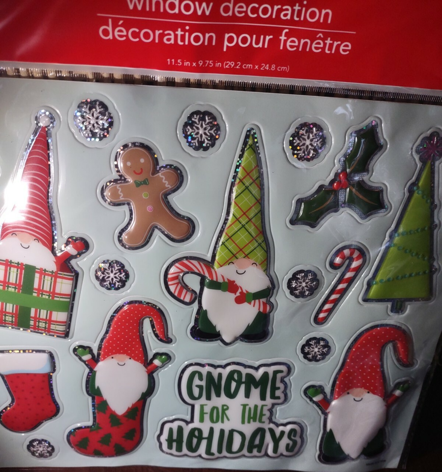 - Christmas Window Clings/ Decorations "Gnome For The Holidays" New-SHIPS N 24 HRS