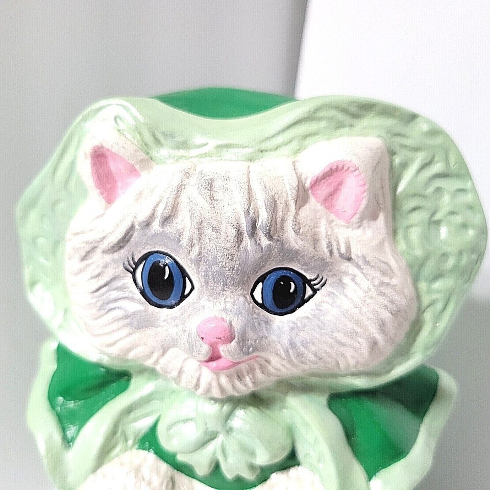- Christmas Winter Muff Vtg Ceramic Cat Statue White Gray Figure 90s Unknown Mold