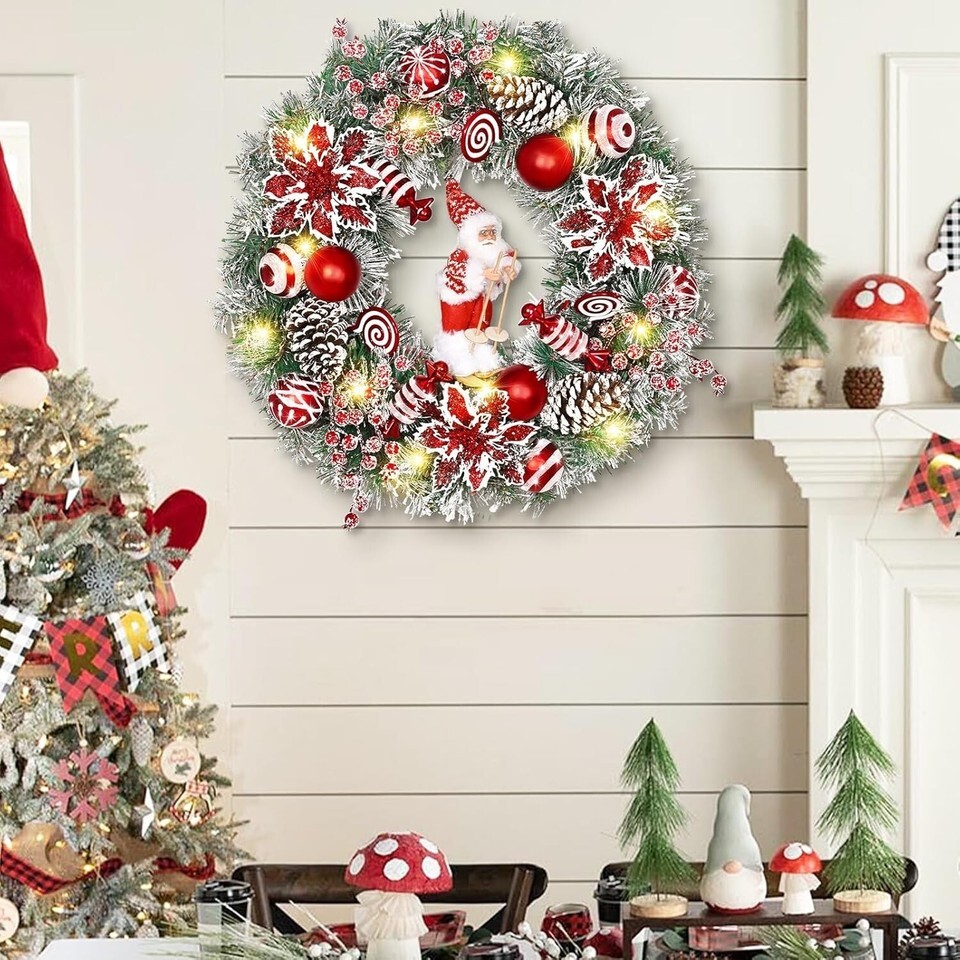 - Christmas Wreaths for Front Door, 2 Pack 18" Santa Skiing Poinsettias w/ Lights