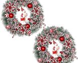 Christmas Wreaths for Front Door, 2 Pack 18" Christmas Wreath with Skiing Santa Claus, Red Poinsettias Christmas Wreath, Christmas Door Wreath for Indoor Outdoor Decoration