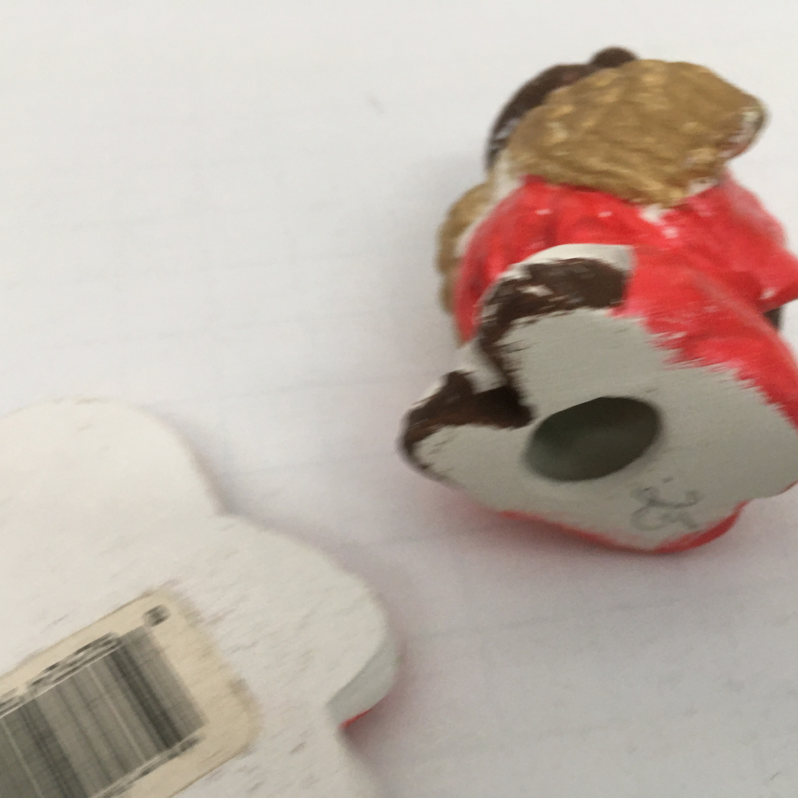the wing on the bear is broken and the puppy one has a small chip on the bottom of shoe