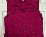 Christopher Banks Women?s Stretch Denim Vest Size XL. Elevate your wardrobe with this stylish sleeveless magenta vest. Perfect for any occasion, this vibrant piece adds a pop of color to your outfit. Armpit to armpit measures 22?. Shoulder to hem is 25?. 58% Cotton, 40% Polyester, 2% Spandex and Machine Washable. Very Good