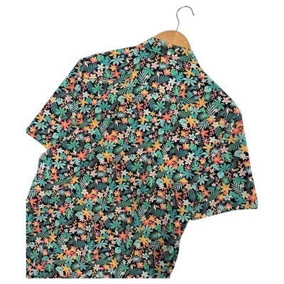 Notes: Modern casual/aloha styling, great for vacation, resort, or summer wear. Compare measurements to a similar shirt for best fit.