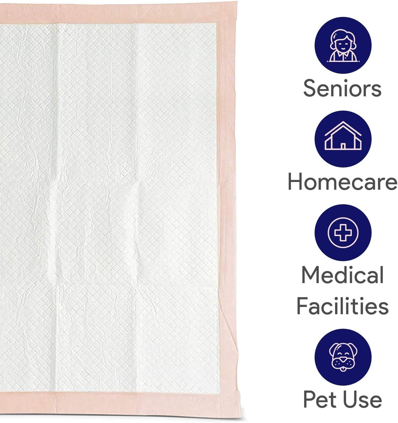 PREMIUM QUALITY: Ultra thick, absorbent, and soft, these peach colored pee pads can be used for homecare, medical facilities, and more. They measure 30" x 36", are latex free, and skin friendly.