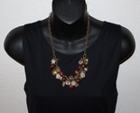 - Chunky Necklace Brown Gold Tone Wood Glass Plastic Cluster Bead Chain Choker 18"