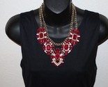 - Chunky Necklace Gold Toned Chain Red White Stones Rhinestone Statement 18"