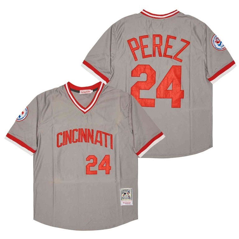 - Cincinnati Reds #24 Tony Perez Jersey Old Style Uniform Gray