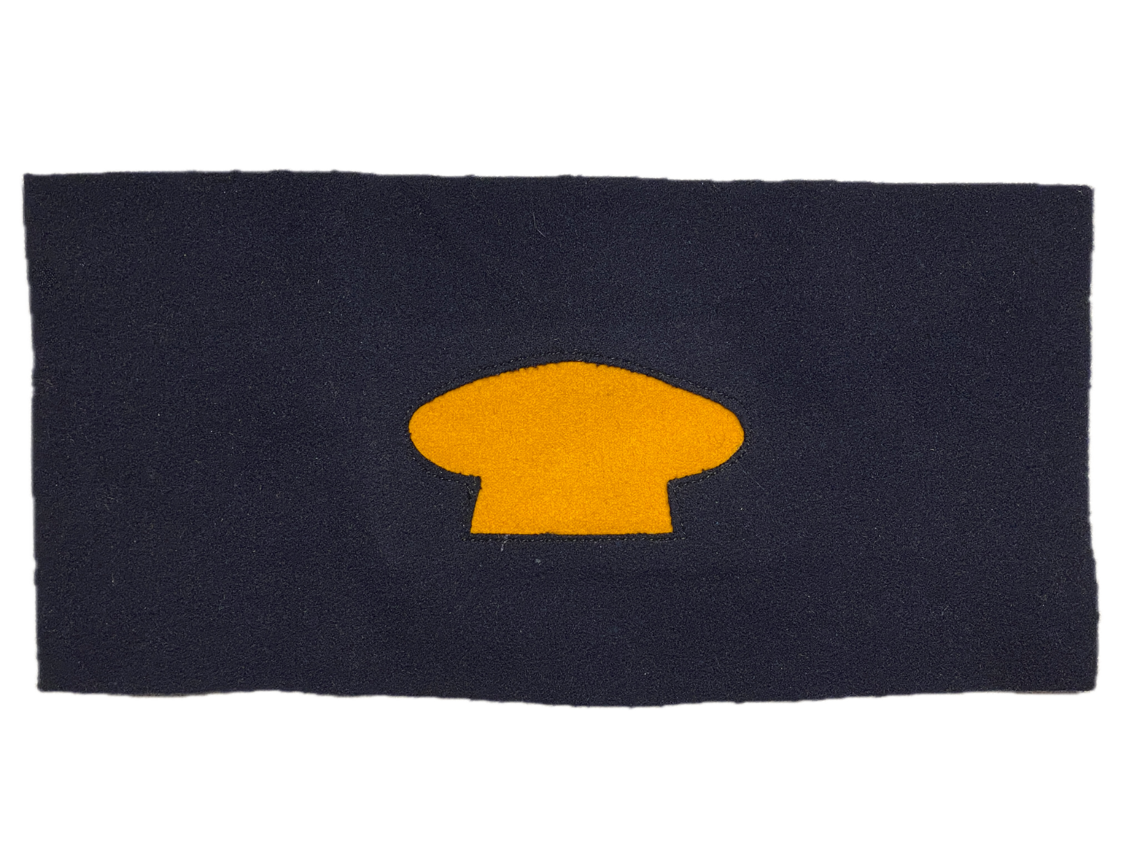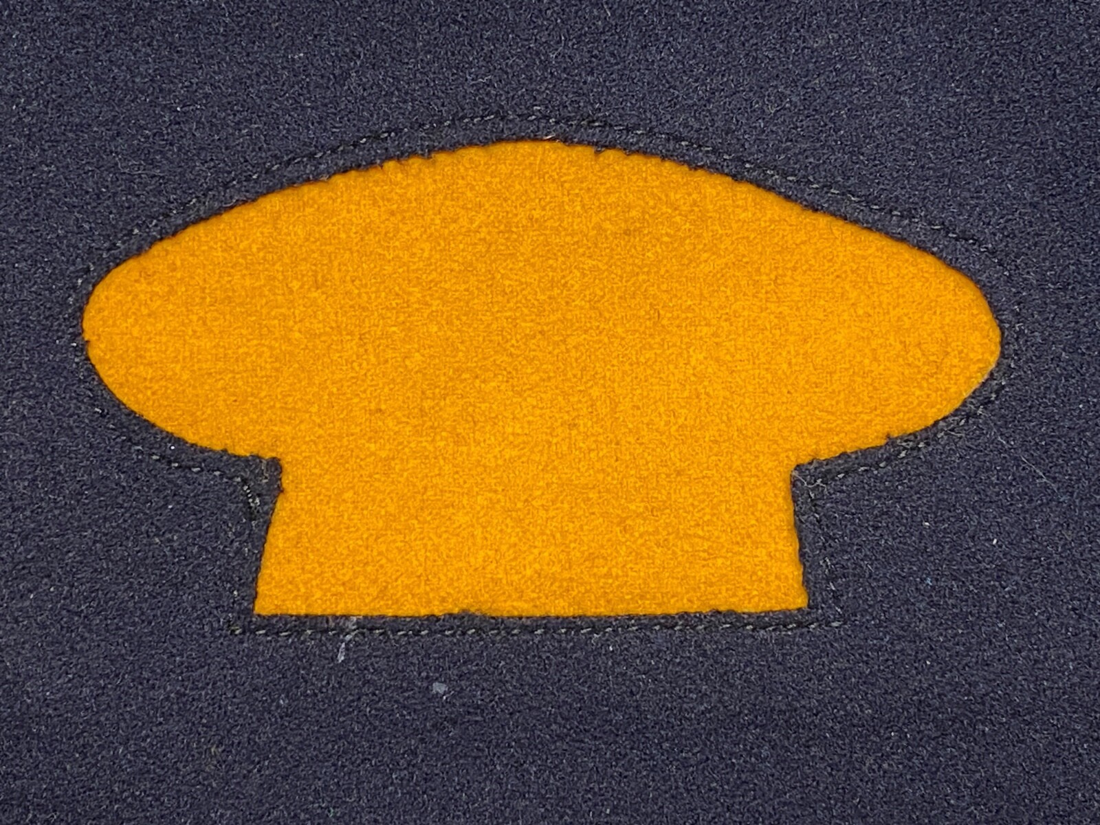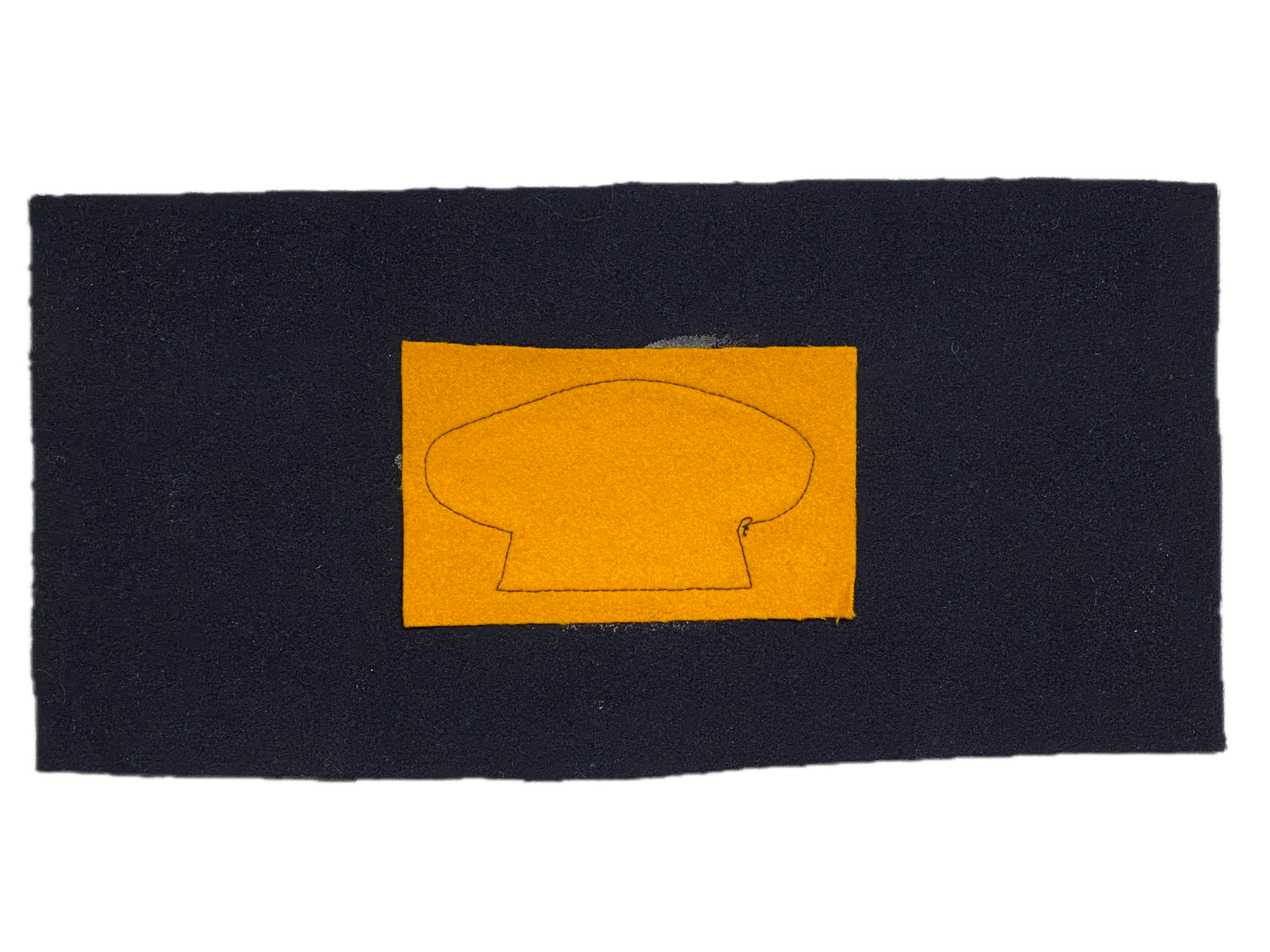 Dark blue wool with applied yellow wool cooks cap construction.