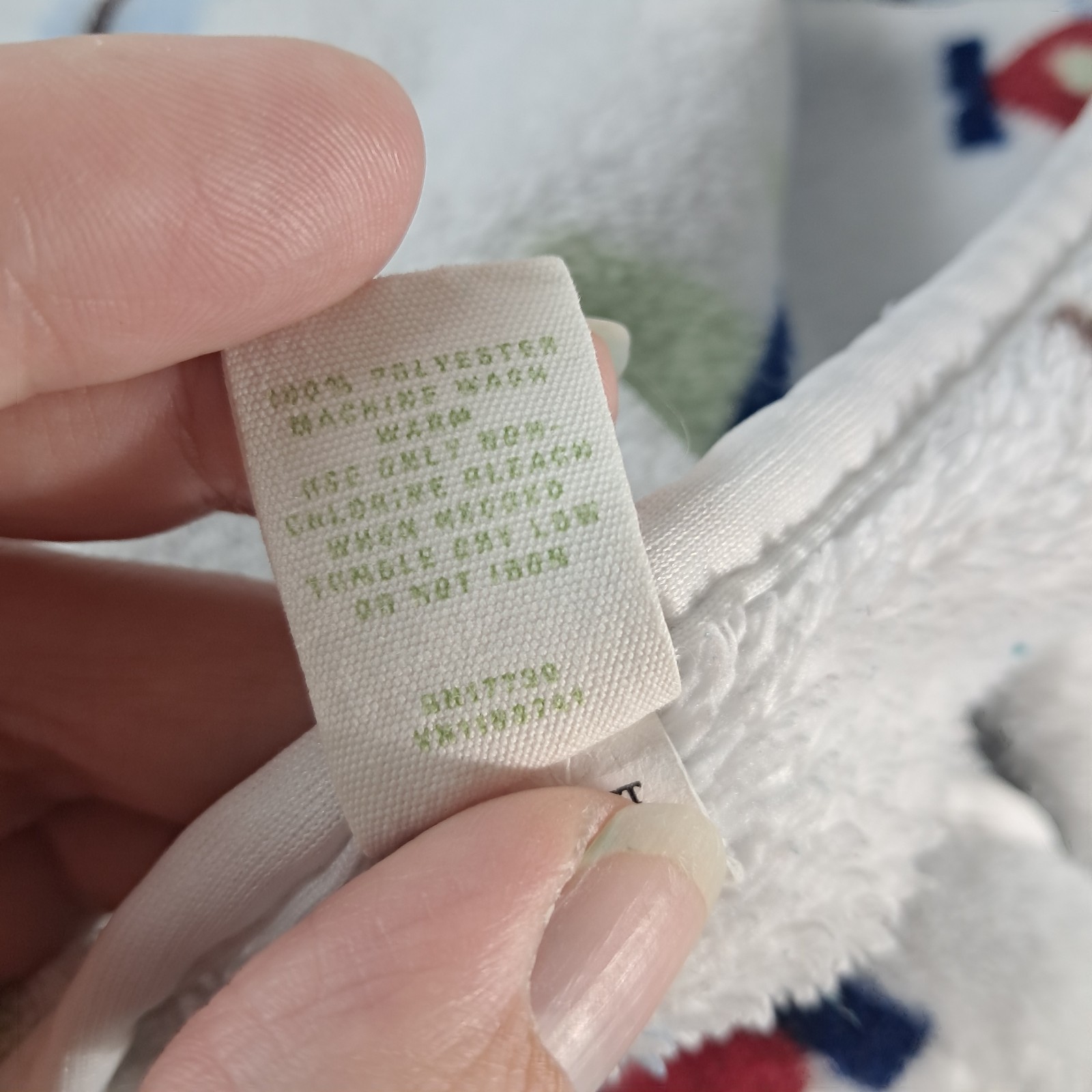 Plush style blanket. Some love wear from use. Light red stain as shown, otherwise good condition.