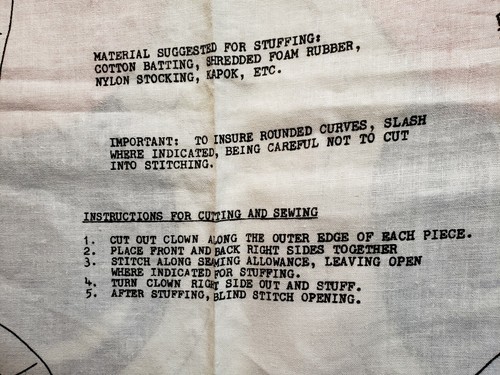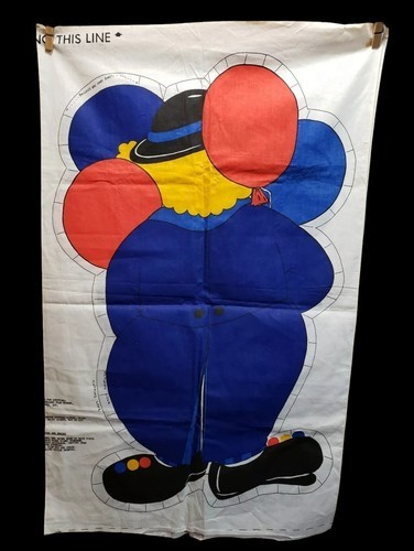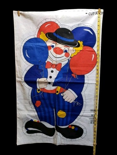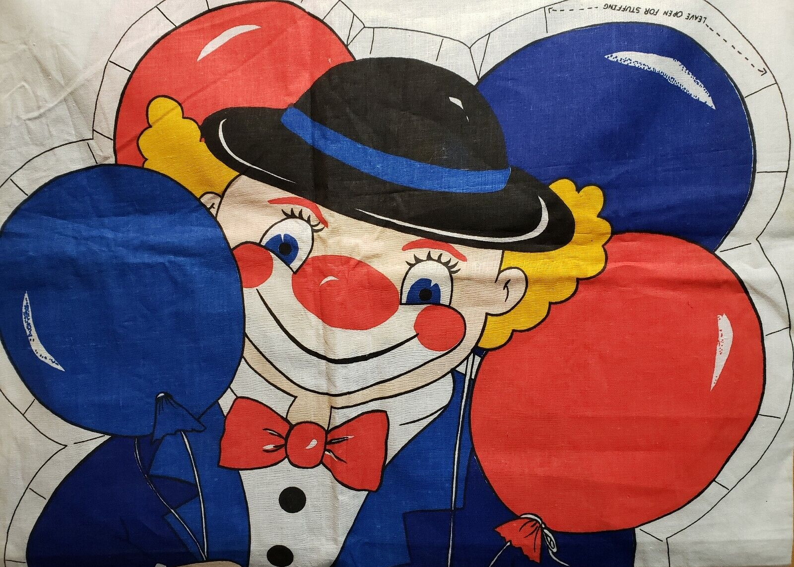 UP FOR SALE: Circus Clown With Balloons Vintage 1970s Cut N Sew Fabric Panel