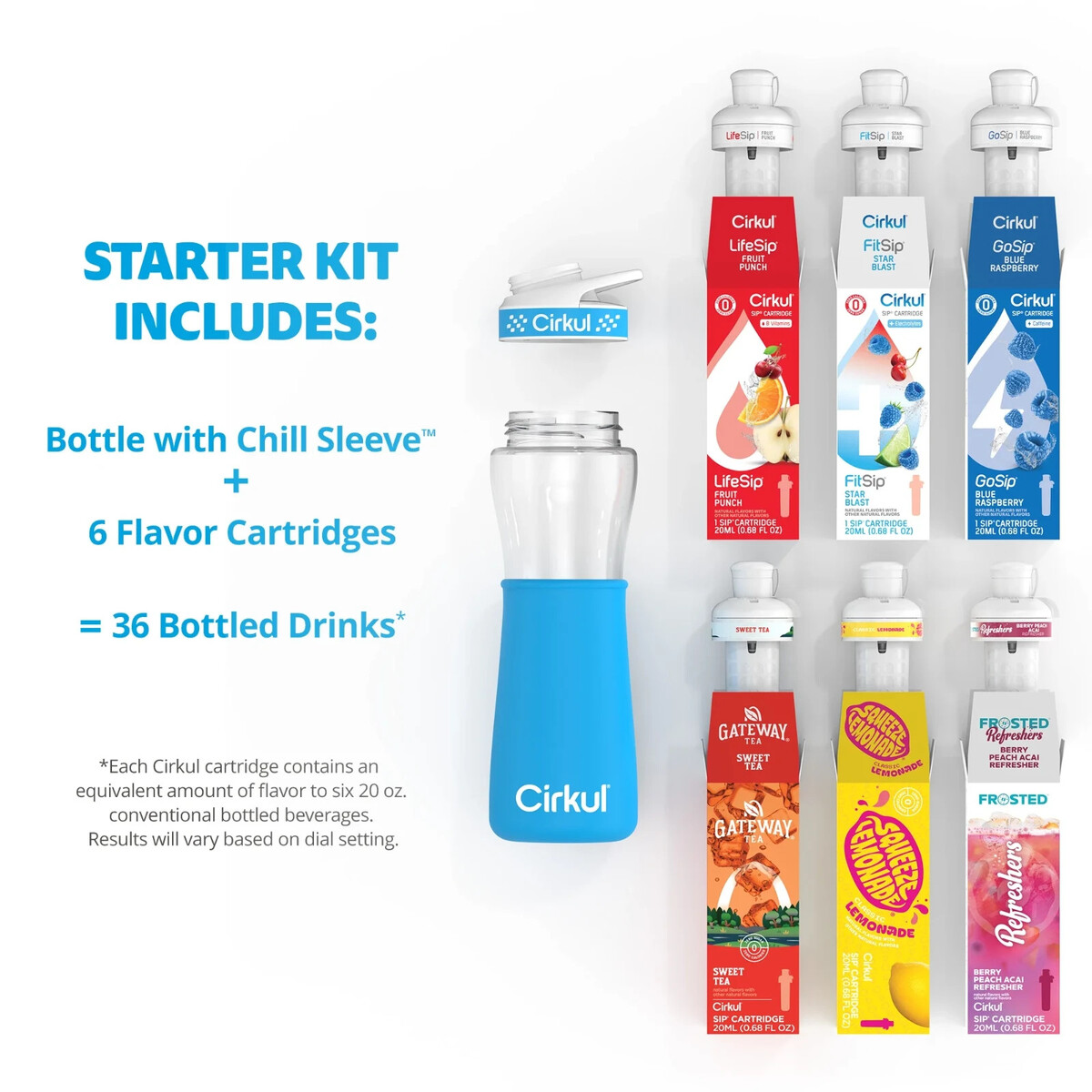 - Cirkul 22 fl oz Plastic Bottle&Blue Chill Sleeve Value Pack w/ 6 Flavor Cartridg