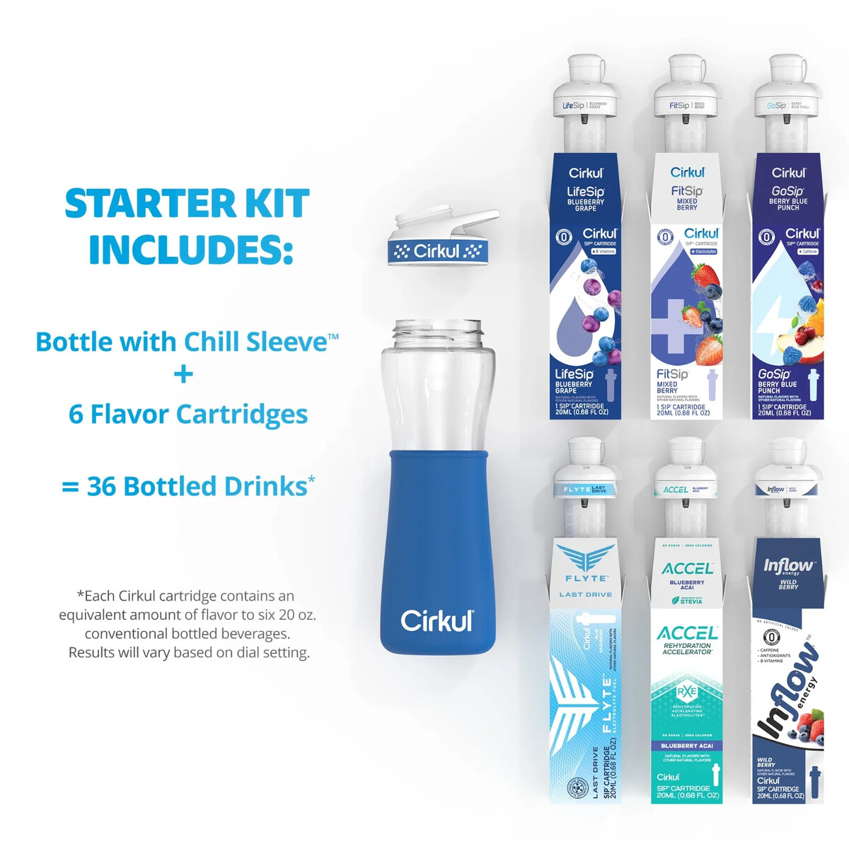 - Cirkul 22 fl oz Plastic Bottle&Navy Chill Sleeve Value Pack w/ 6 Flavor Cartridg