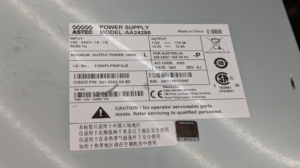 - Cisco Astec AA24280 PWR-C45-1400AC 1400W Power Supply Module - Untested