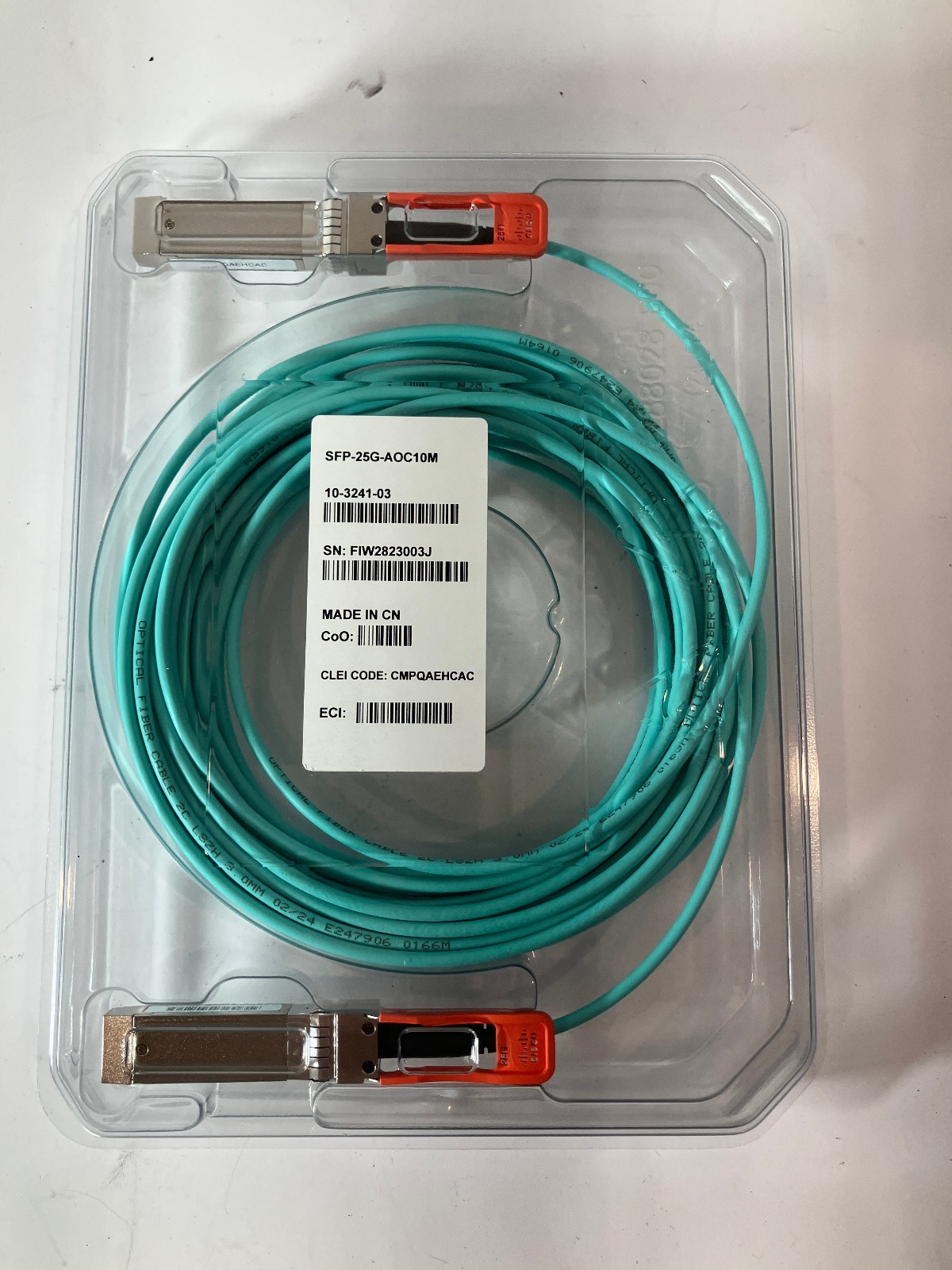 - Cisco SFP-25G-AOC10M 10-3241-01 25G Base Active Optical Cable Genuine OEM NOB