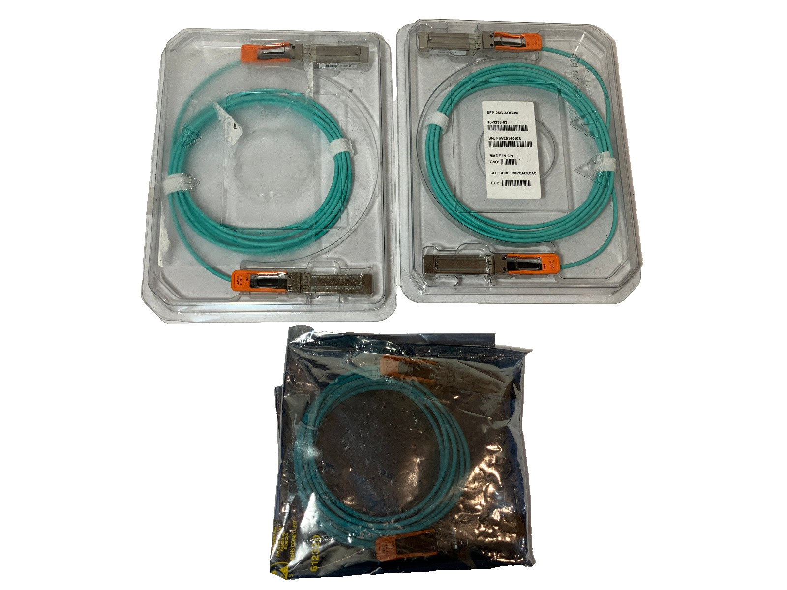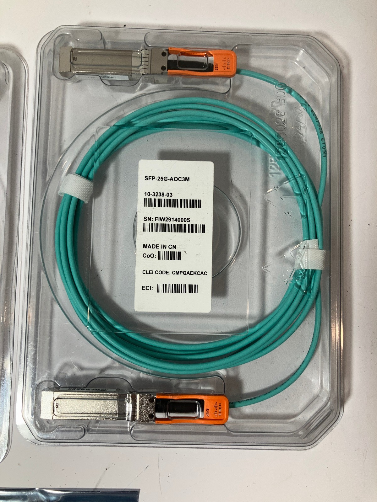 This listing is for a lot of 3 Cisco SFP-25G-AOC3M 25G Base Active Optical SFP Cable part number 10-3238-01.