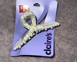 Elegant and feminine pearl hair claw clip from Claire?s featuring a looped design adorned with glossy faux pearls. The soft ivory tone and timeless style make it perfect for weddings, parties, or elevating an everyday hairstyle. Durable spring hinge ensures a strong, comfortable hold for most hair types. Brand new and still attached to the original Claire?s display card with $15 price tag.