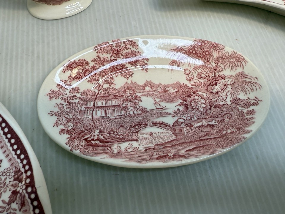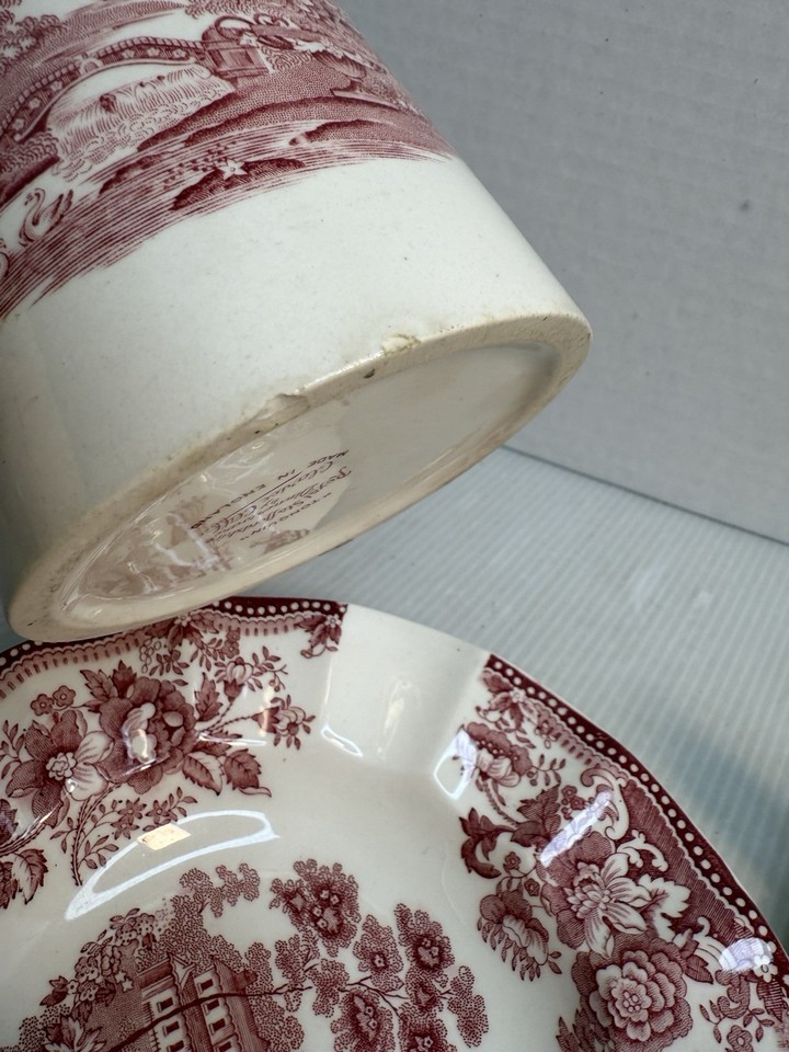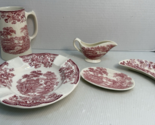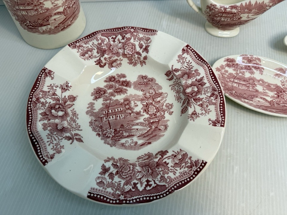 - Clarice Cliff Tonquin Royal Staffordshire China 5pc Lot Pink Red