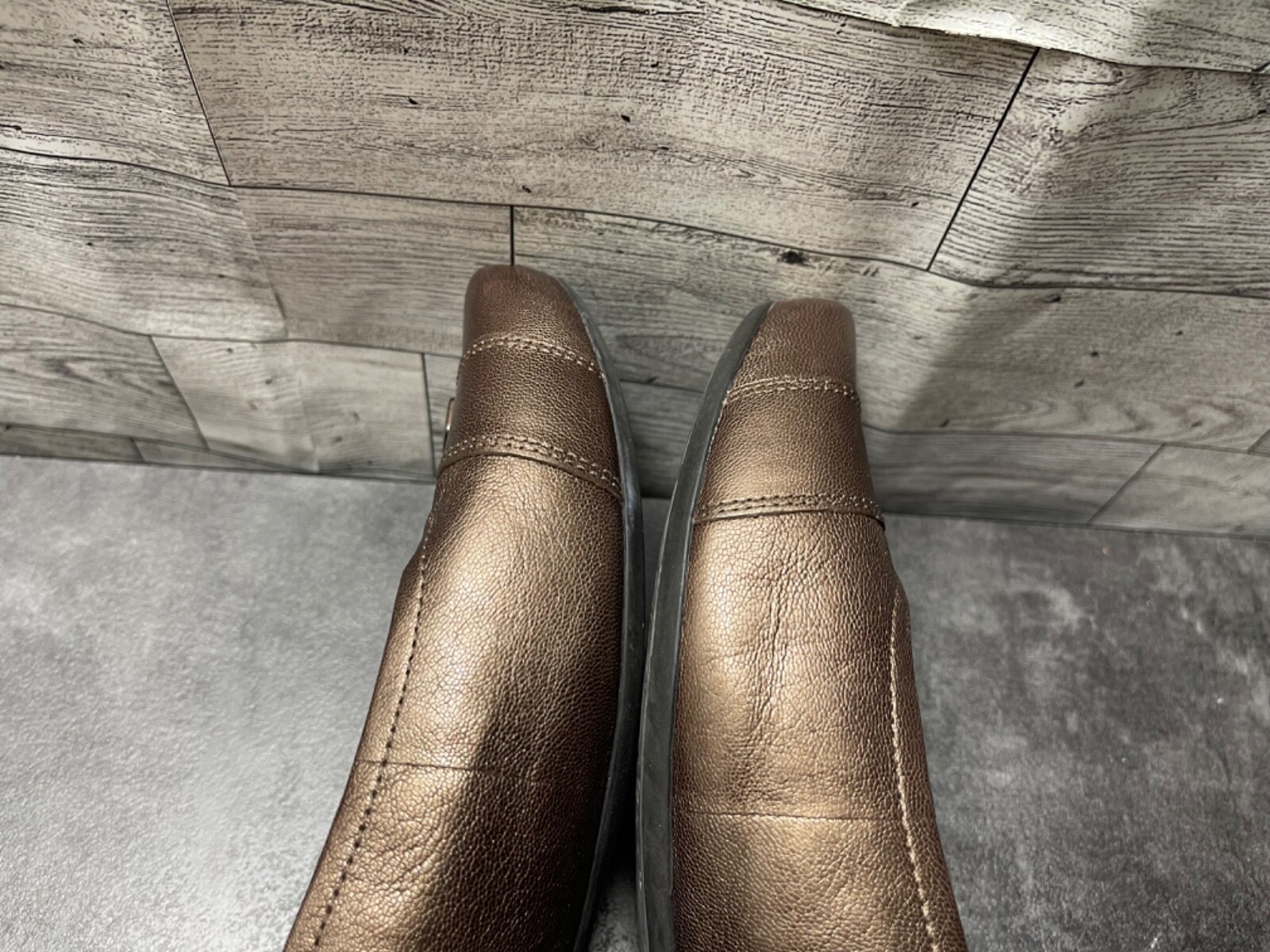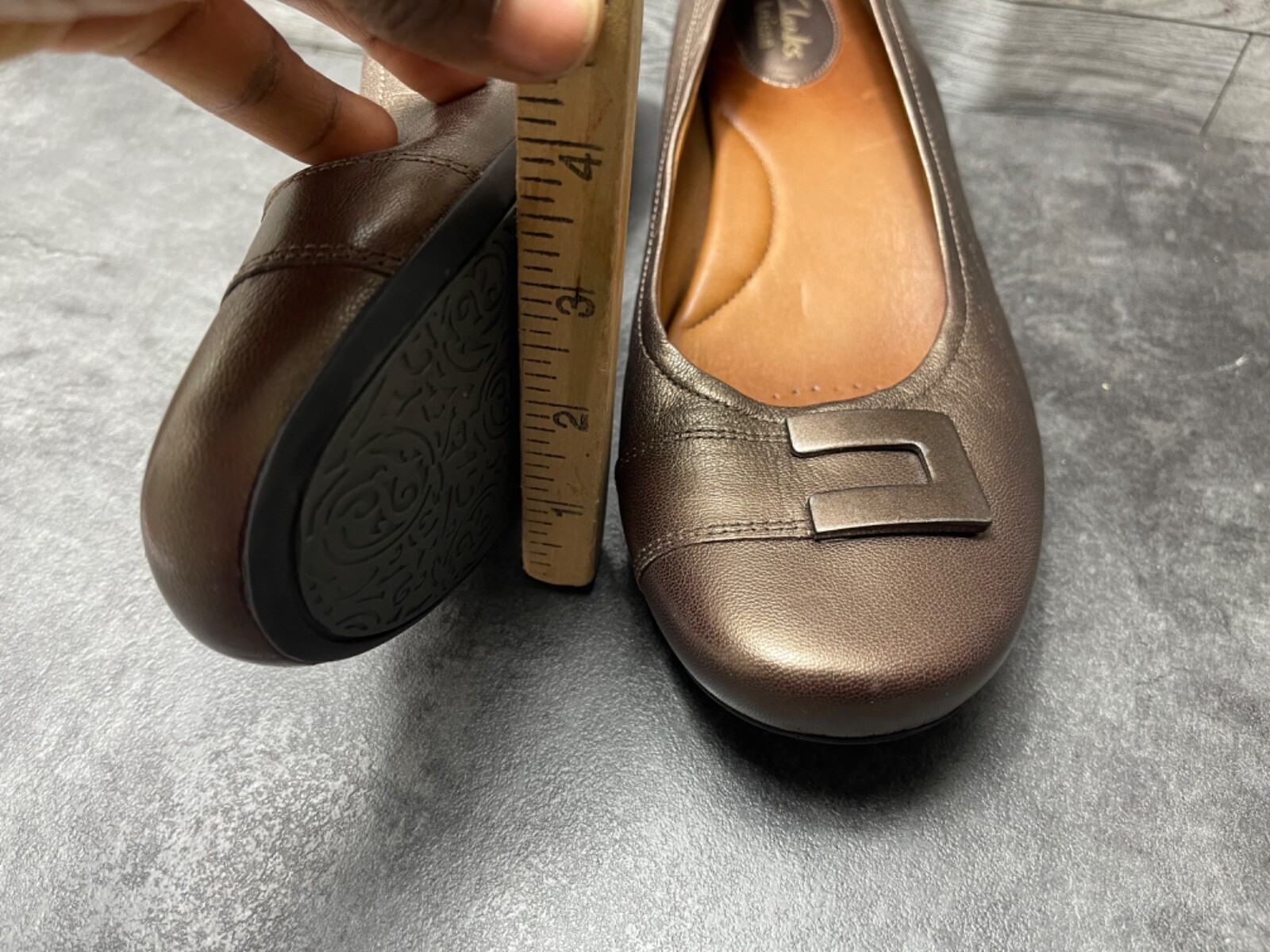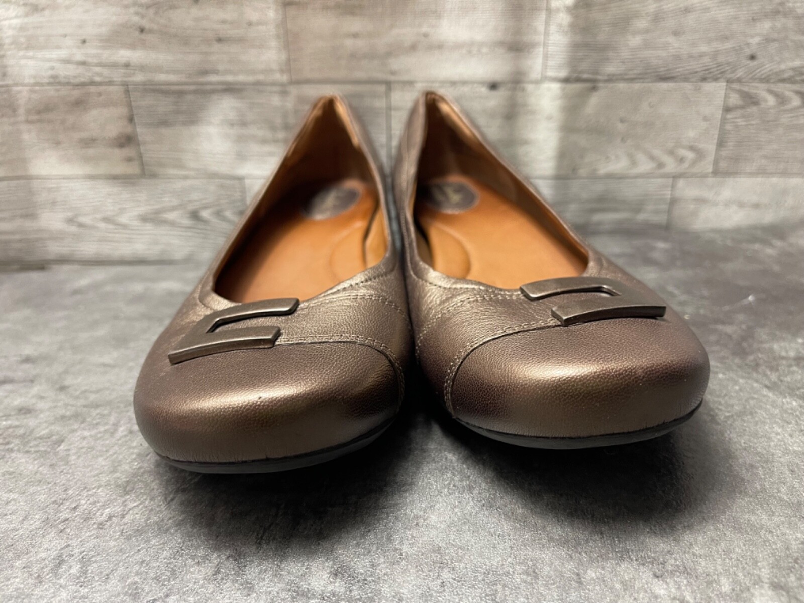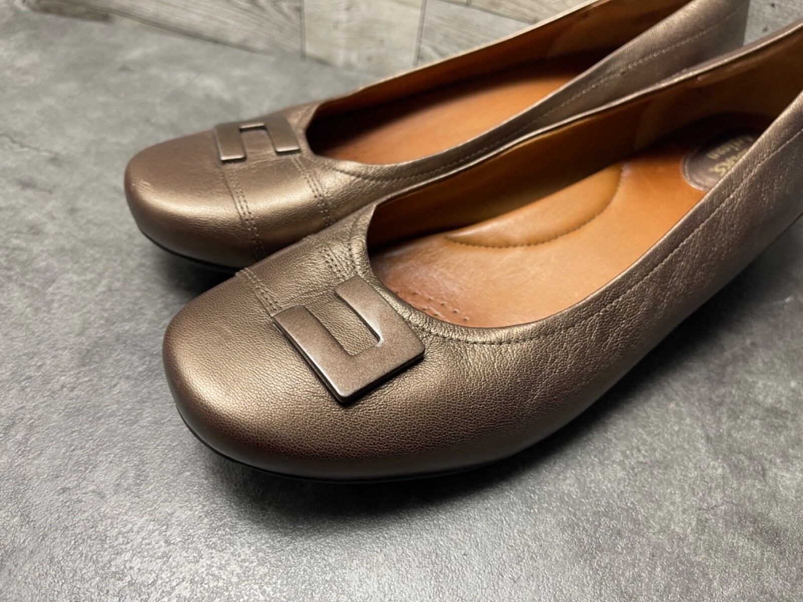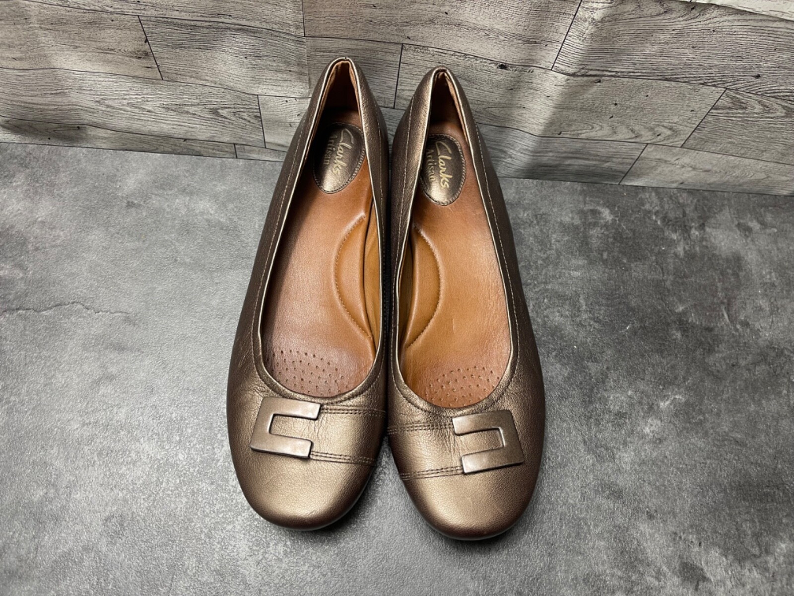 - Clarks Artisan Flats Women 9.5M Concert Choir Shoes Bronze Leather Buckle loafer