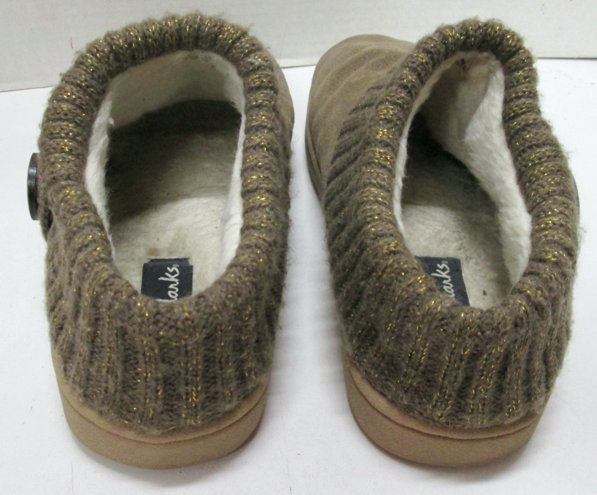 - Clarks Womens Slipper Suede Leather Knitted Collar Slip Ons - Size 10M