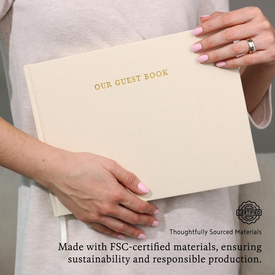 Sustainable Responsibly Made - Crafted with FSC-certified materials our guest book supports responsible production and sustainable forest management making it an eco-conscious choice for any occasion.