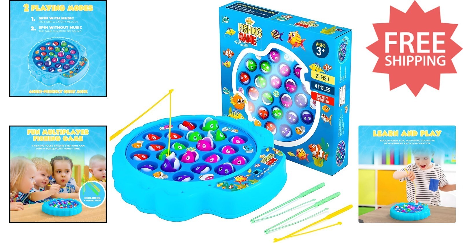 Discover endless fun with our Classic Fishing Game Set, featuring vibrant magnetic fish, colorful fishing poles, and a motorized spinning board. Packaged in a attractive box, it's perfect for imaginative play. Crafted to meet international safety standards, this durable toy is ideal for children aged 3 and up, ensuring safe, long-lasting entertainment. Designed for up to 4 players, it encourages family, friends, or classmates to enjoy together, with a music switch to add exciting sound effects. Beyond fun, it helps young children develop hand-eye coordination and improve reflexes, supporting essential motor skills. Measuring 10x11x1.8 inches, this delightful gift is perfect for birthdays, holidays, or Thanksgiving. Requires 2 x 1.5V AA batteries (not included). Surprise your kids with this engaging fishing game today! To ensure fast and reliable delivery, we work with multiple fulfillment partners and suppliers. Depending on availability and location, your order may ship from different warehouses or arrive in packaging that varies from item to item. Tracking details are typically provided shortly after shipment, and customer satisfaction remains our top priority. Please note that due to carrier policies and regional regulations, certain items may not be eligible for delivery to specific states or territories.