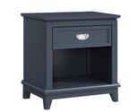 Add a touch of classic style and practical storage to your bedside with this navy blue nightstand. Crafted from wood and engineered wood with a sleek navy blue finish, this nightstand features a dovetail drawer with smooth ball-bearing glides for easy access to your essentials, and a lower storage cubby for books or other items. Polished nickel-tone flush ring pulls add a touch of sophistication, and with no assembly required, this nightstand is ready to enhance your bedroom decor right out of the box.