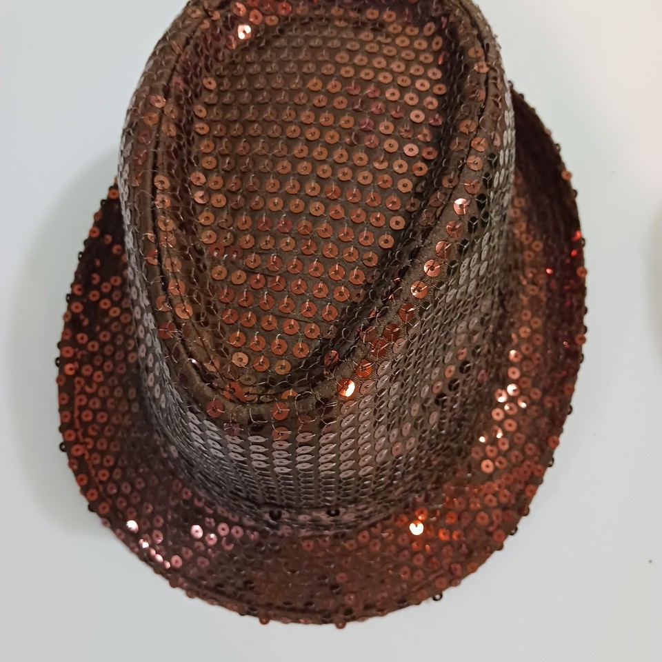 - Classic SEQUIN Trilby FEDORA Novelty Costume HAT Brown/Green 2-Piece Color Set