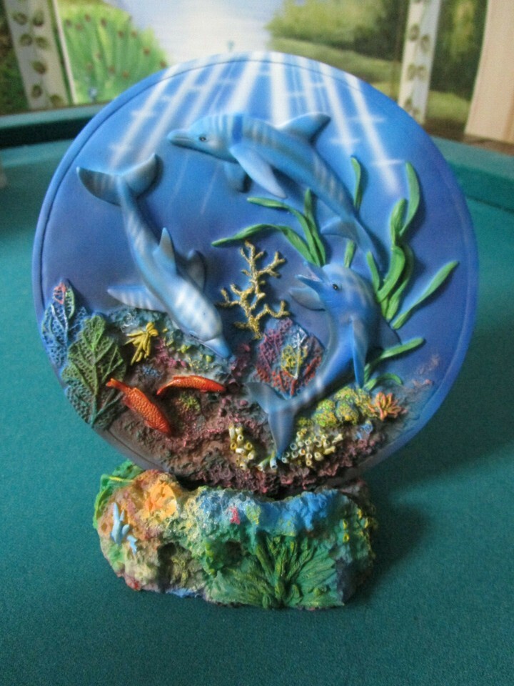 - CLASSIC WILDLIFE DOLPHINS SCULPTURE PLATE WITH STAND NIB ORIG
