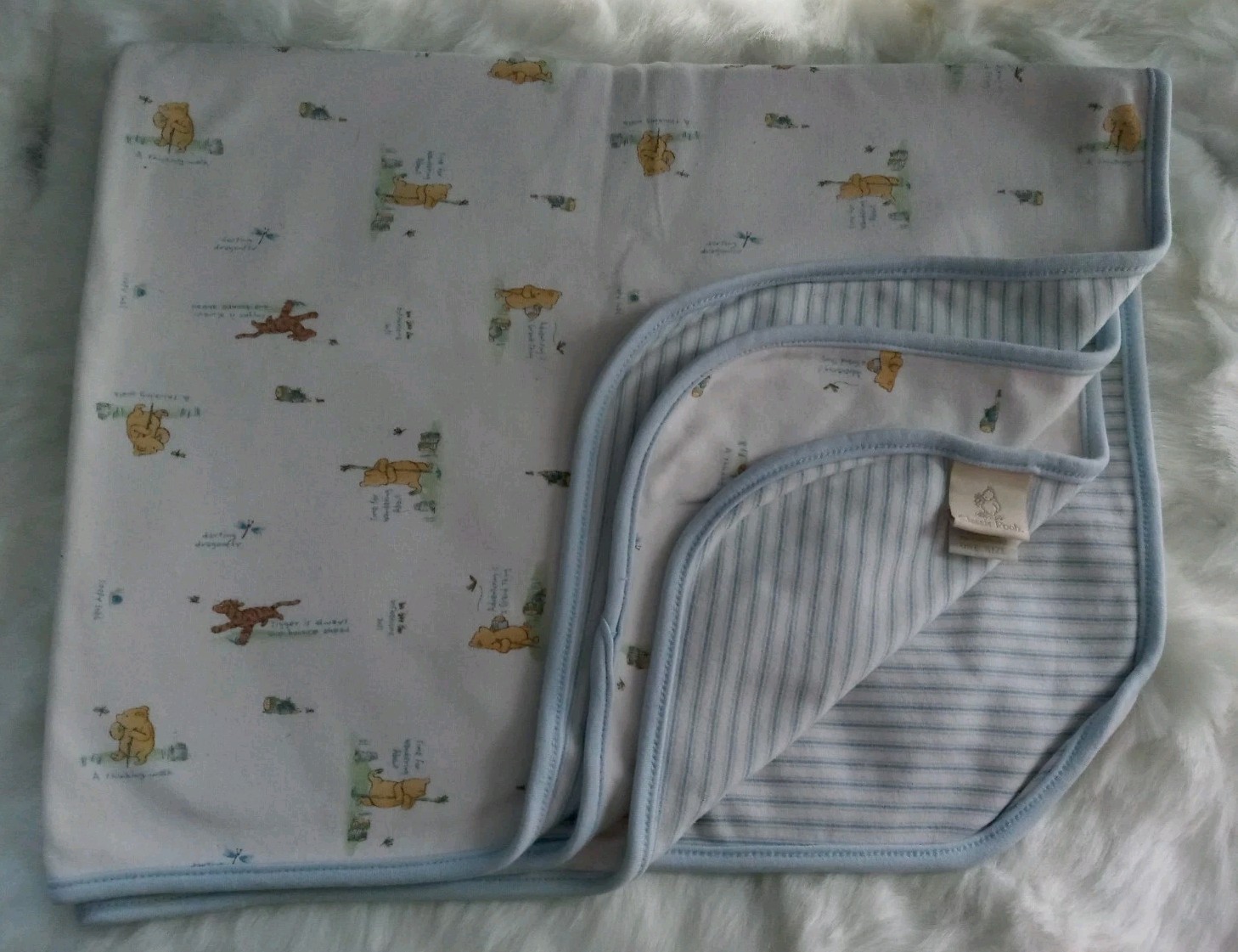 - Classic Winnie the Pooh Cotton Reversible Stripe Pooh Tigger Baby Blanket HTF