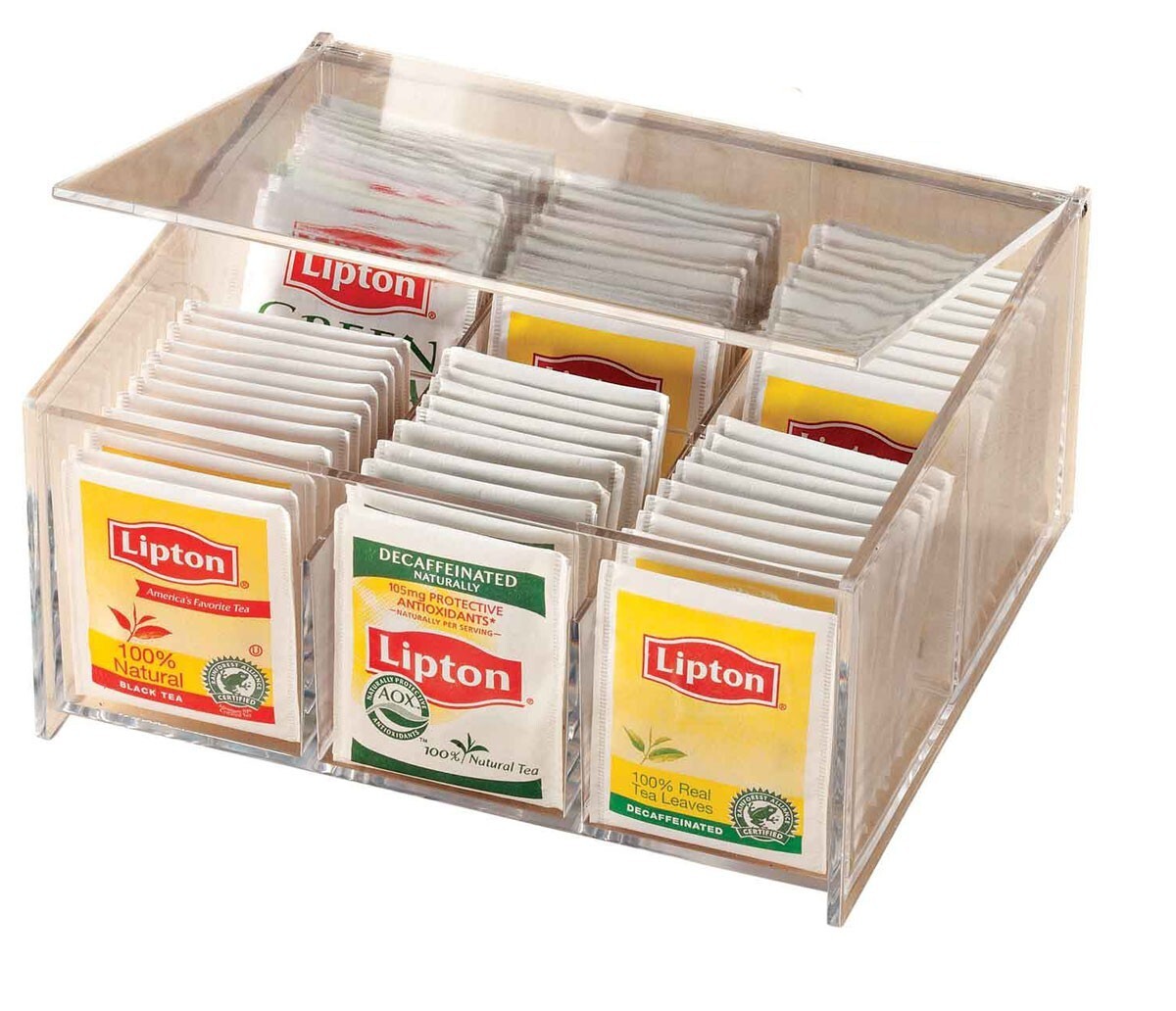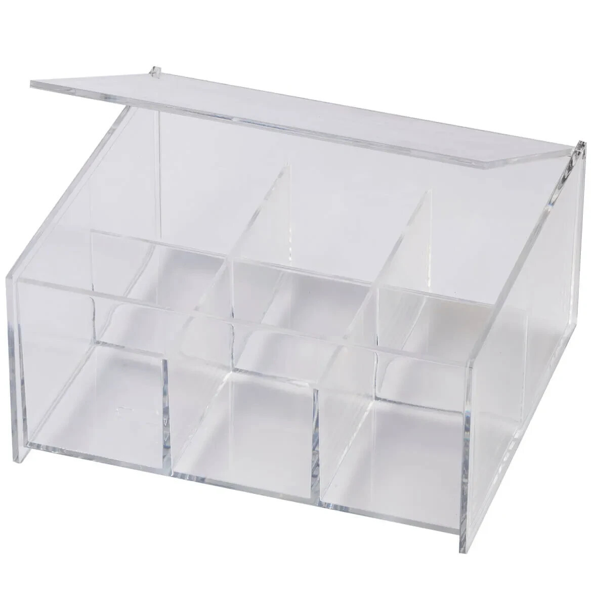 - Clear Acrylic Tea Bag Box 6 Compartments Holds 84 Teabags Hinged Lid Storage NEW