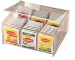 Clear Acrylic Tea Bag Box 6 Compartments Holds 84 Teabags Hinged Lid Storage NEW