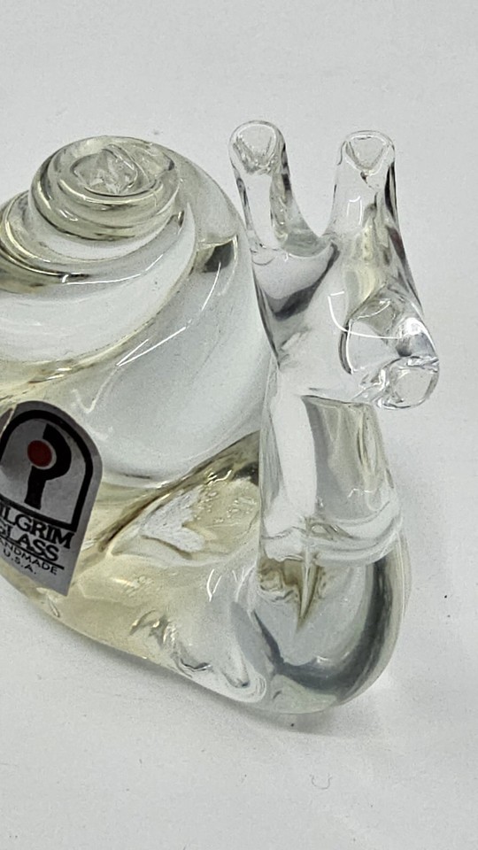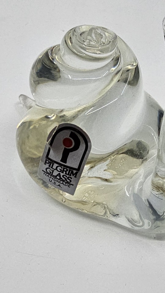- Clear Handblown Glass Snail Paperweight By Pilgrim Glass USA - Original Sticker