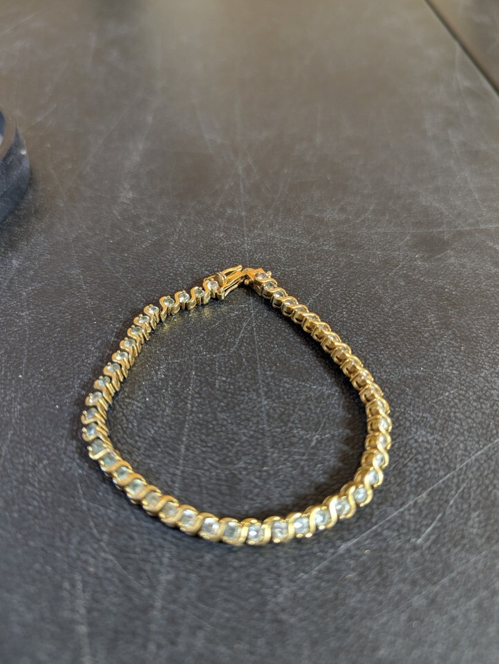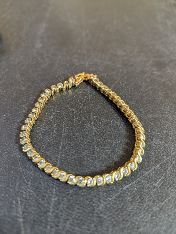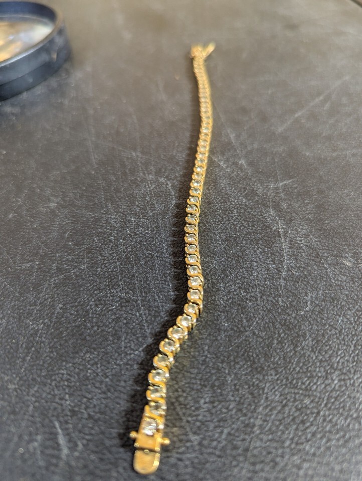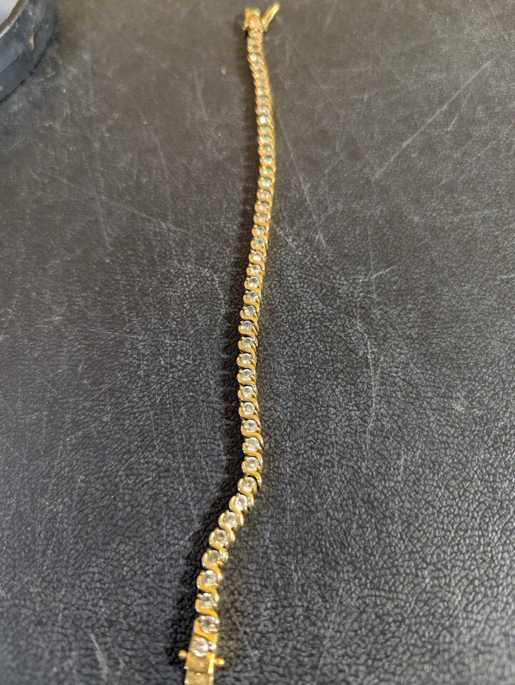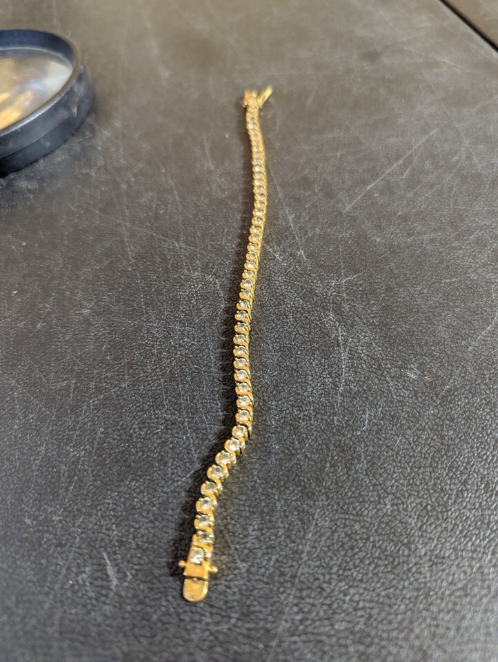 - Clear Stone Gold Tone 8" Tennis Bracelet Marked ROMAN