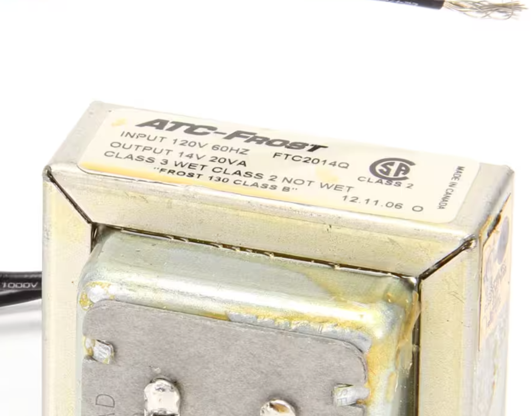 The Cleveland FTC2014Q Transformer is a genuine OEM step-down transformer designed to convert 120V AC input to 14V AC output with a power capacity of 20VA. This low-voltage transformer is essential for delivering stable power to control circuits in Cleveland steamers and kettles, helping ensure reliable operation of timers, valves, and sensors in demanding commercial kitchen environments.