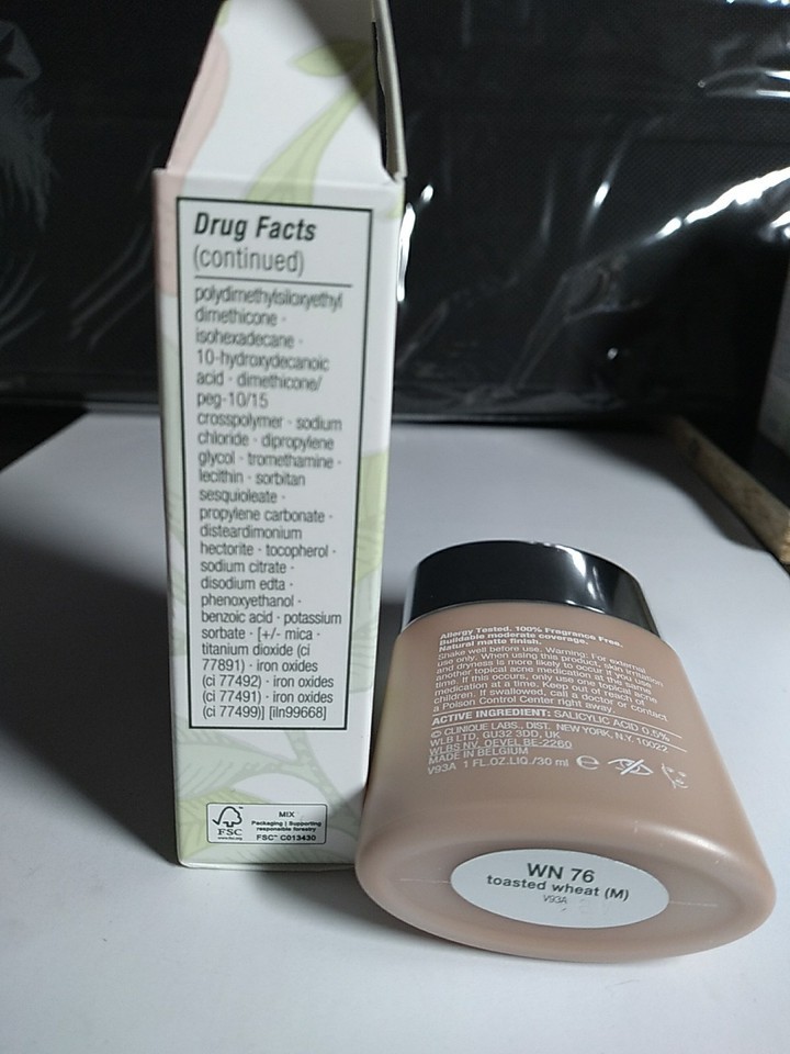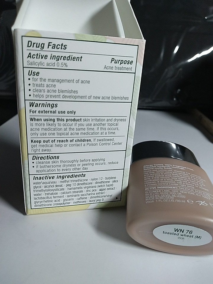 - CLINIQUE Acne Solutions Liquid Makeup Foundation 1 oz, WN 76 TOASTED WHEAT, NIB