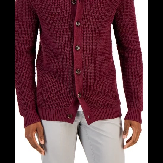 - Club Room Men's Chunky Waffle Cardigan Red Plum-XL