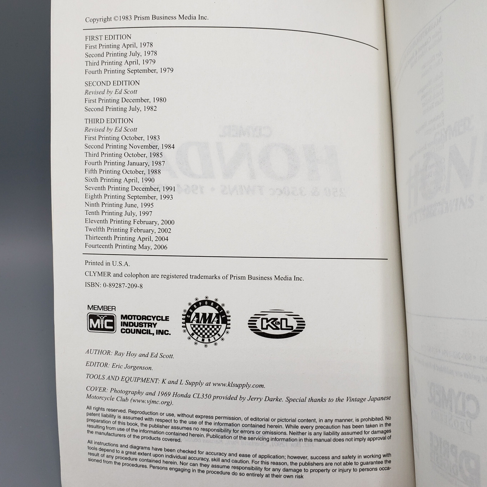 - Clymer Honda 250cc 350cc Twins 1964 1974 Service Repair Manual Book 2006 M322