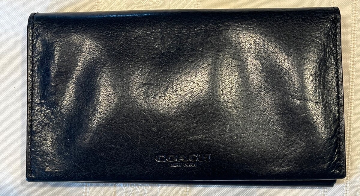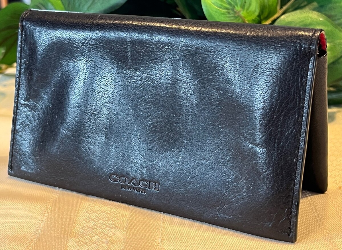 - Coach 63224 Leather Breast Pocket Card Wallet Bifold Black Red Mens Unisex EUC