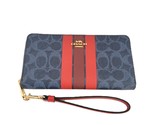- Coach CBO09 Long Zip Around Wallet Signature Varsity Stripe Denim Bold Red