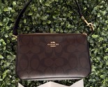 The Coach Nolita 19 In Signature Canvas CW426 in Brown Black is a stylish small shoulder bag perfect for women. Made from durable canvas material with gold-plated hardware, this bag features a solid exterior color with a brown leather handle/strap. The zip closure adds a secure element to this trendy and brand new accessory from Coach, making it a versatile addition to any outfit.